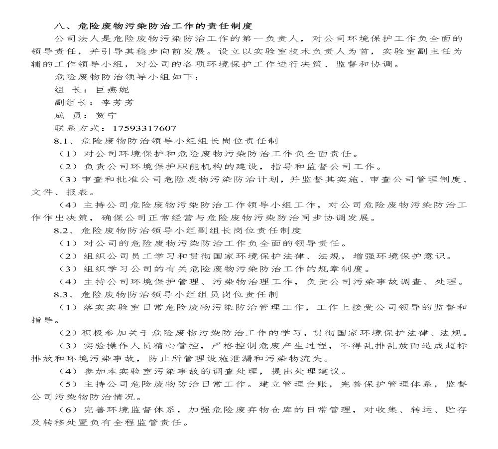 甘肅涇瑞環(huán)境監(jiān)測有限公司實驗室危險廢物污染防治信息