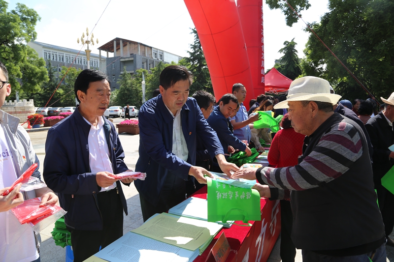 (局領(lǐng)導(dǎo)向現(xiàn)場(chǎng)群眾發(fā)放生態(tài)環(huán)境保護(hù)宣傳資料)